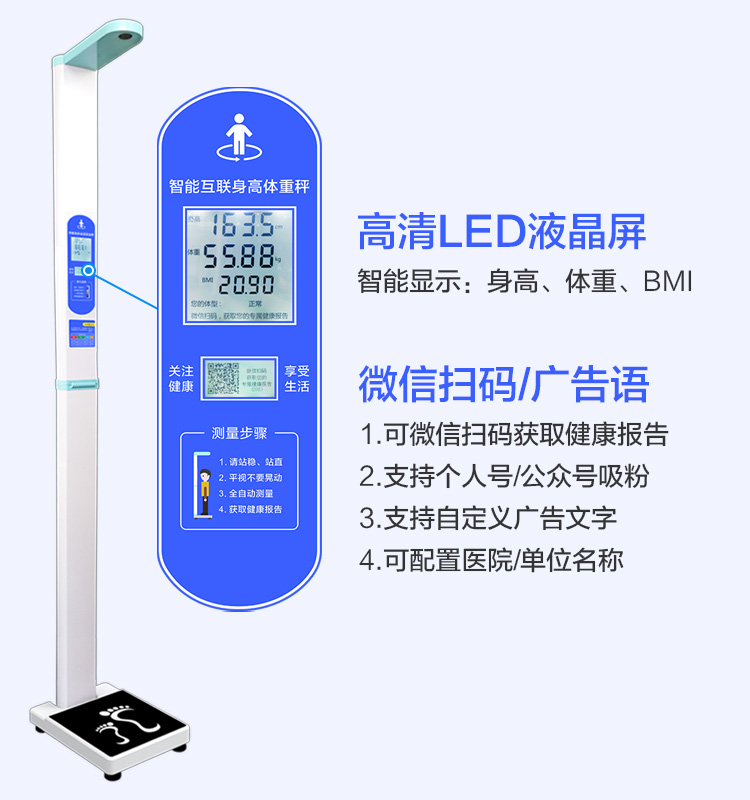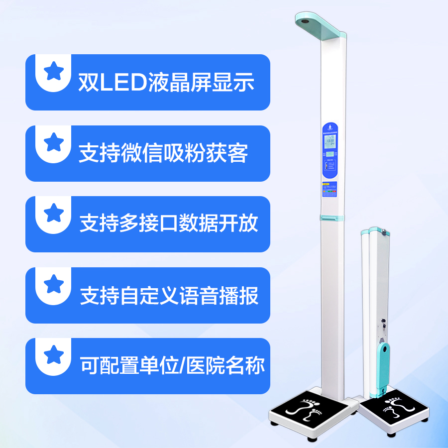 上禾SH-201智能雙屏身高體重測量儀,適合90%以上的春季體檢使用場景,雙屏顯示、可折疊、可設(shè)置您的專屬宣傳語、全自動測量、語音播報、數(shù)據(jù)傳輸?shù)?,您想要的功能,它都有?/p>